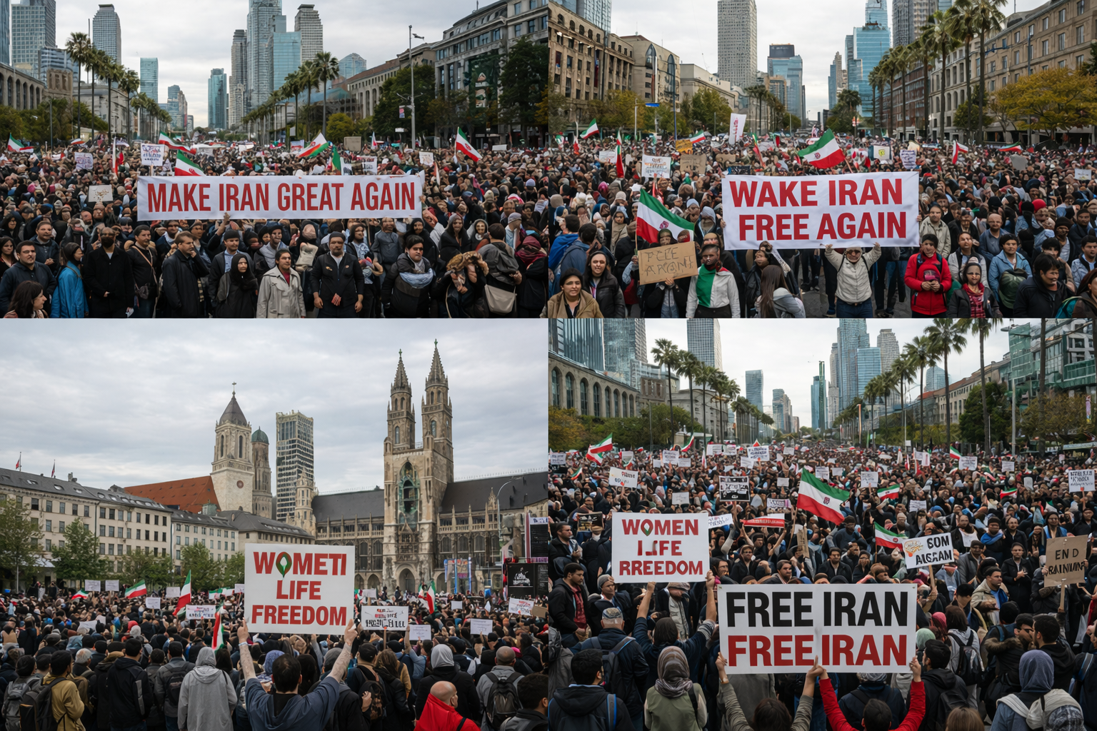 About 250,000 protesters rallied in Munich against Iran’s government, heeding exiled Crown Prince Reza Pahlavi’s call for intensified international pressure on Tehran.